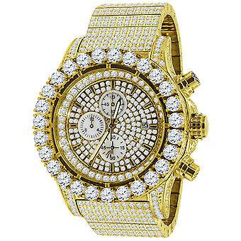 High quality FULL ICED OUT cubic zirconia stainless steel watch - gold