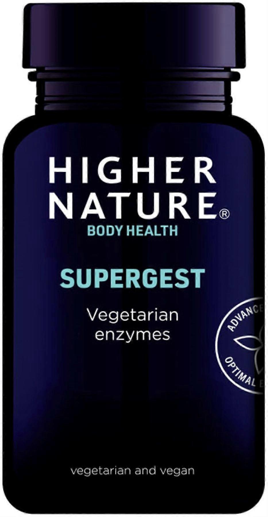 Higher Nature Supergest is a carefully formulated herbal supplement designed to support healthy digestion and enhance overall digestive comfort. This product contains a unique blend of herbs and vegetarian enzymes that work synergistically to aid the digestive process, making it an ideal choice for individuals experiencing digestive challenges or requiring additional support during times of stress or recovery. Key Benefits: Promotes optimal digestion through natural herbal ingredients and vegetarian enzymes Supports digestive health during periods of low appetite and convalescence Provides gentle digestive assistance for older adults and those with sensitive digestion Helps alleviate discomfort associated with stress-related digestive disturbances Suitable for vegetarians and free from animal-derived enzymes Recommended Use Cases: This supplement is especially beneficial for individuals who: Experience digestive sluggishness or irregularity Are recovering from illness or surgery and require digestive support Have a reduced appetite due to stress or other factors Are older adults seeking to maintain digestive function Prefer plant-based digestive enzyme support Incorporating Higher Nature Supergest into your daily routine can help enhance digestive efficiency and promote overall well-being. As with all supplements, it is recommended to follow the suggested dosage and consult a healthcare professional if you have any underlying health conditions or are taking other medications.
