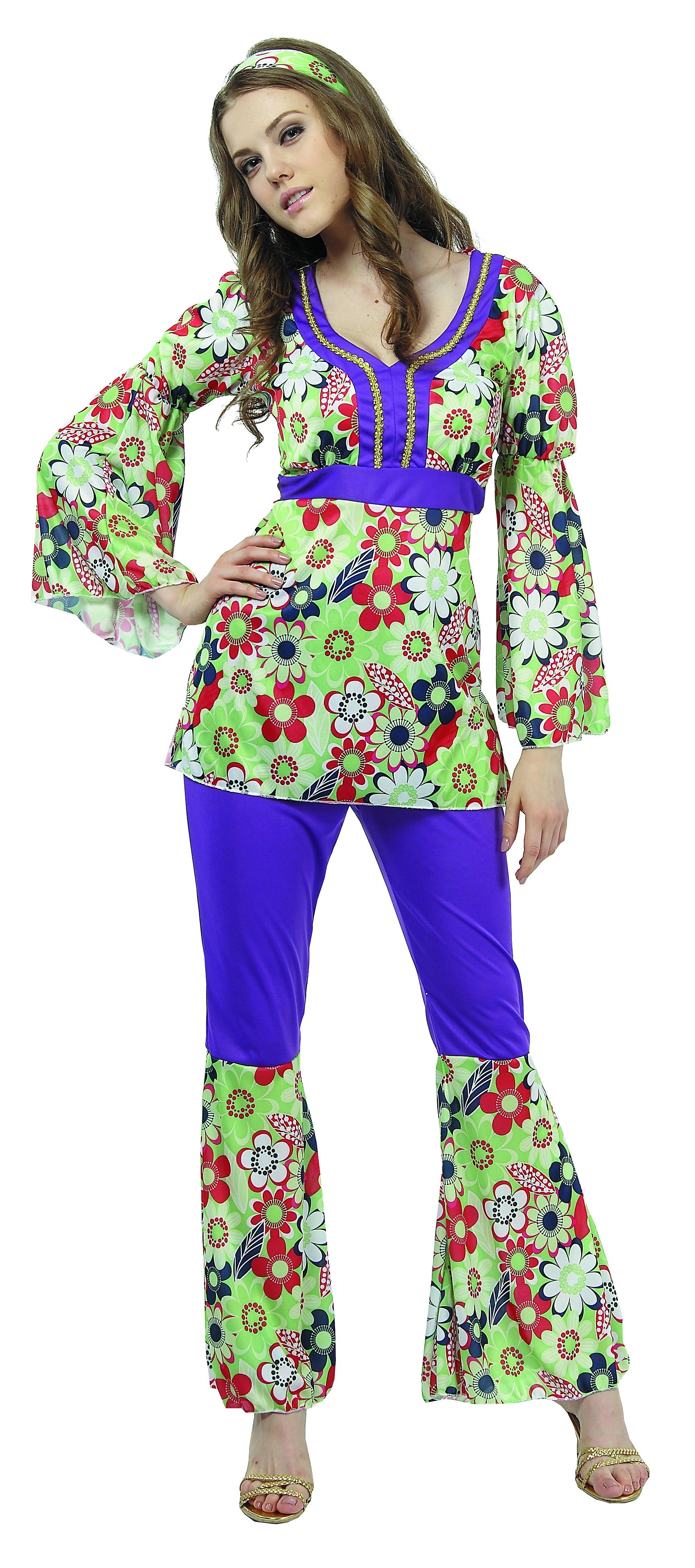 Déguisement hippie fleuri et violet femme
