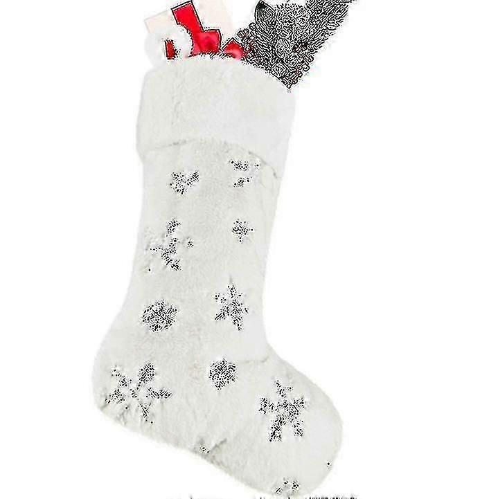 Hmwy-sequin Snowflake Christmas Stocking For Decoration Fireplace Hanging