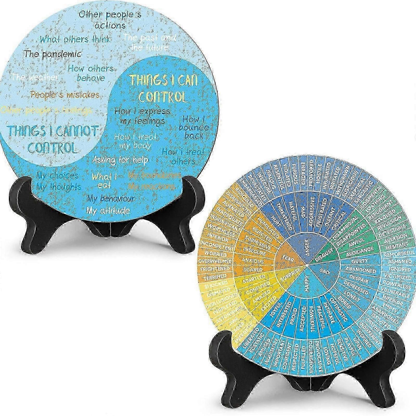 Calming Emotion Wheel Psychological Health Decorative OrnamentFeatures:Promote Emotional Well-being: Our tranquil mood wheel decorative ornaments are designed to help you relieve stress and release -up emotions. With its calming colors and unique design, it serves as a visual reminder to take a to and find .Colors and Premium Materials: Crafted from wood and PVC, our set of 2 mood wheels showcases a beautiful array of colors that will up any space. The combination of hues and materials ensures long-lasting enjoyment and enhances the overall appeal.Versatile Decoration: Perfectly sized at 5.51x5.51 inches for the discs and 4.72 inches for the base, our mood wheel ornaments can be easily placed on any , making them ideal for your study or office. They effortlessly in with any decor style and add a of wherever they are displayed.Thoughtful Packaging: Each set includes 2 mood wheel discs and 2 bases, providing you with multiple options for displaying and arranging these eye-catching decorative . Packaged securely to damage during delivery, you can assured that your order will arrive in condition.Enhance Mental Well-being: By incorporating our mood wheel into your surroundings, you can create a and soothing that promotes mental well-being. Whether used as a focal point or a complementary , it serves as a gentle reminder to prioritize self-care and a more peaceful mindset.Product Description:Color: ColorfulSize: Disc -5.51X5.51in, Base -4.72inIncludes: 2 * disc+2 * baseMaterial: Wood+PVCSuitable for: study rooms, offices
