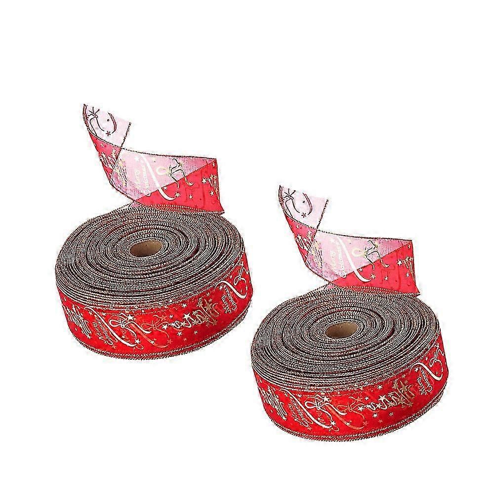 Holiday Wiring Ribbon Red Tree Decoration Ribbon for Christmas Gifts 200x6.3cm 2 Rolls