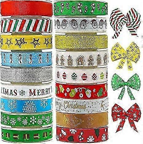 Home Christmas Ribbons,10Pcs Holiday Grosgrain Satin Ribbons for Gifts Wrapping, Wedding, Hair Bows, Party Favor