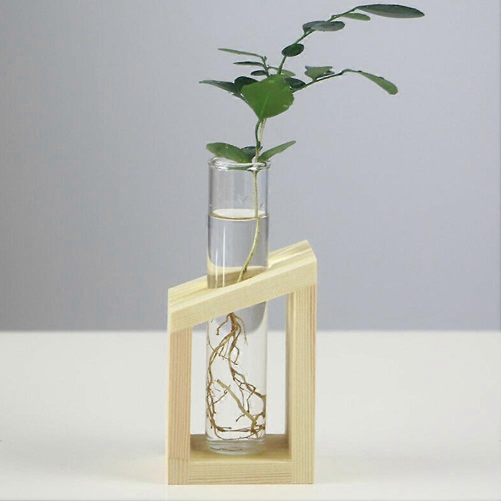 Home Vase Crystal Glass Test Tubes Vase in Wooden Stand Flower Pots for Hydroponic Plants Decoration for Home Garden