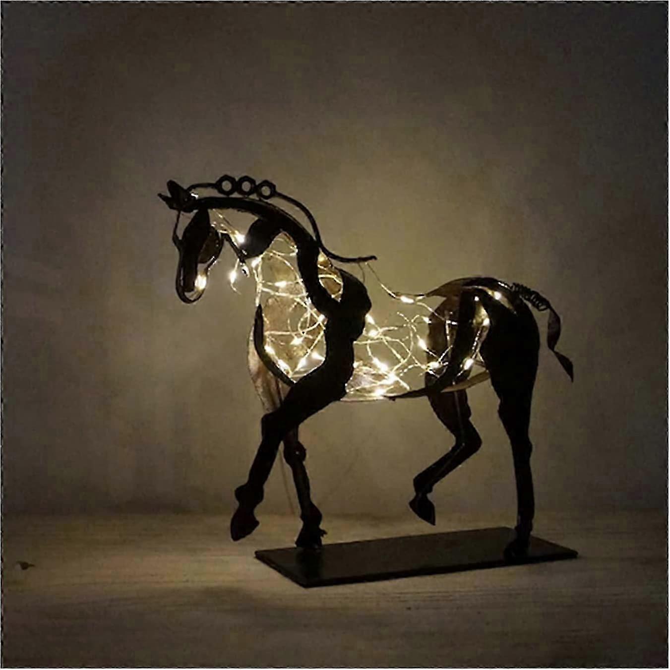 Horse Sculpture Metal Rustic Standing Horse Statue LED Fairy String Lights Warm White Lighting Animal Sculpture Home Restaurant Decoration