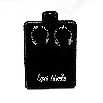 Horseshoe ring 2pc black anodized titanium circular barbell rings w/ spike 16g