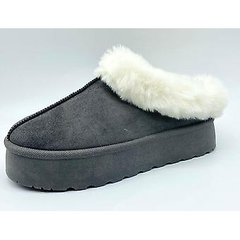 H.O.S Charcoal White Fur Women's Indoor Outdoor Platform Slippers