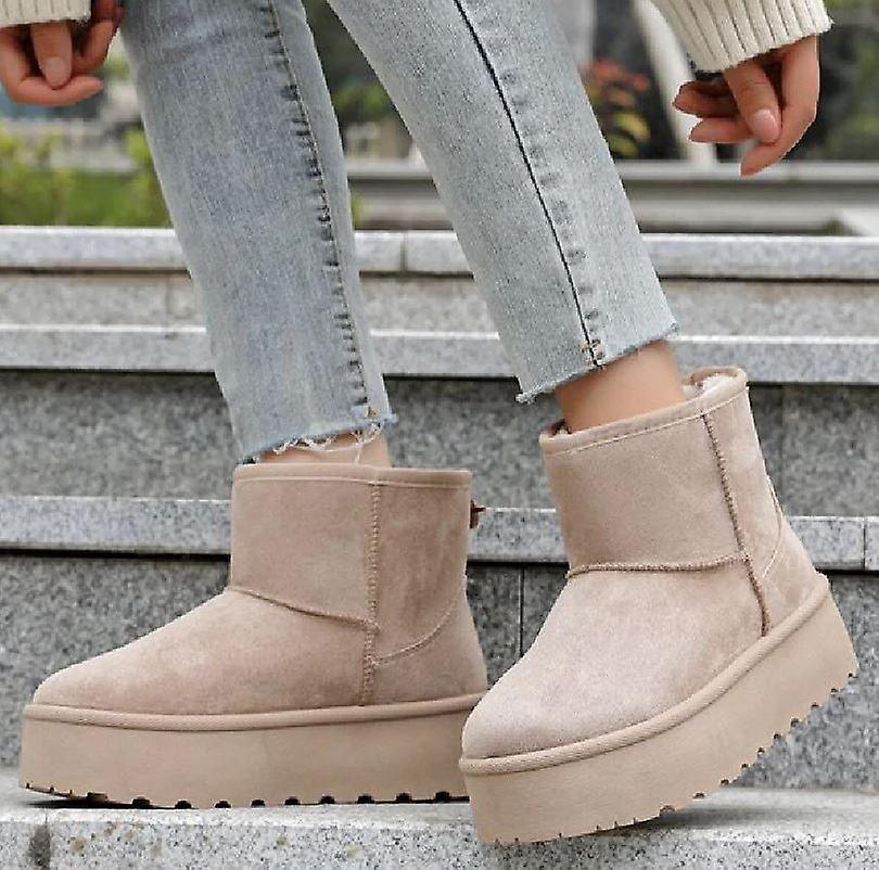 H.O.S Classic Beige Platform Womens Fur Lined Ankle Boots