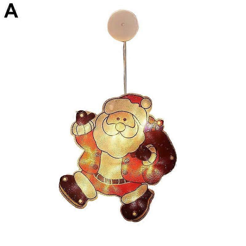 Hot- Christmas Suction Cup Light Santa Claus Reindeer Window Gifts Scene Indoor Pine Layout Christmas Lights Decorati V7P8