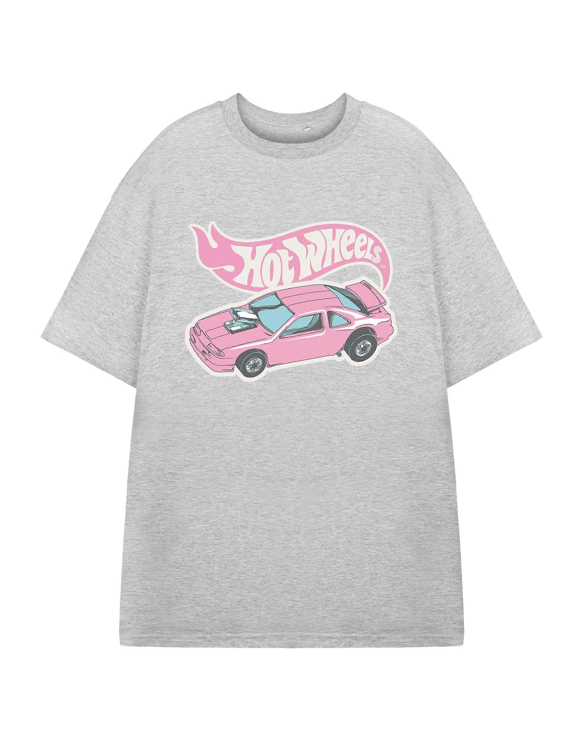 Hot Wheels Womens Short Sleeved T-Shirt Grey Pink Car