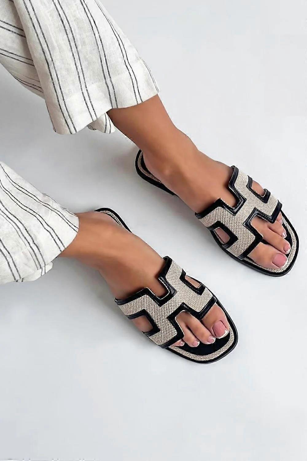 House Of Sehrish HR2 Black Faux Leather Designer Strap Sandals