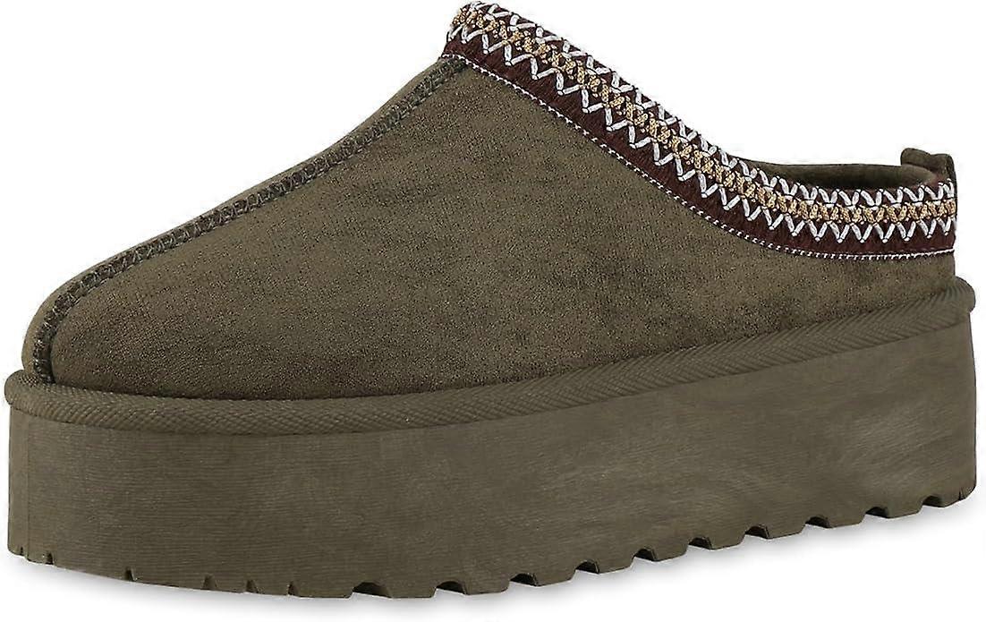 House Of Sehrish MX11H Army Green Fluffy Platform Slippers Faux Fur Lined Ankle Boots