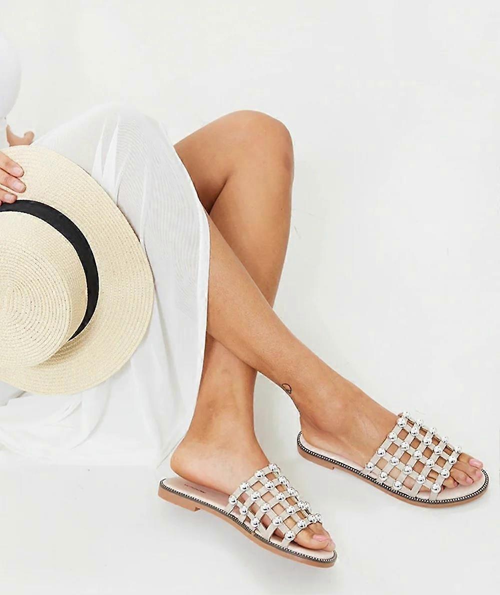 House Of Sehrish RGD353 Nude PU Studded Caged Slider Sandals