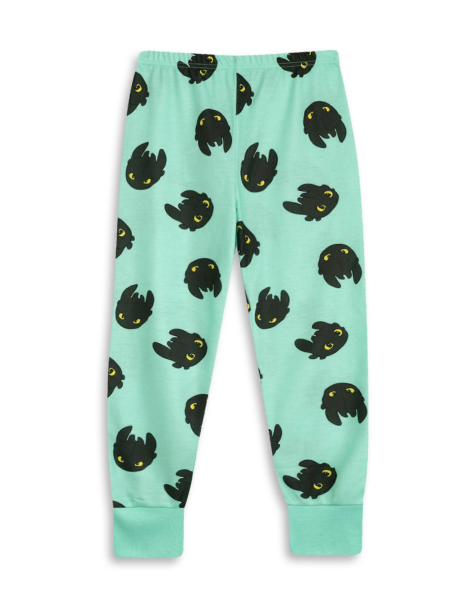 Transform bedtime into an exciting adventure with the How to Train Your Dragon Toothless Kids Black Long Sleeve Long Leg Pyjama Set. Featuring a bold black and mint design, this sleepwear showcases the beloved character Toothless from the DreamWorks franchise. Made from 100% polyester, this pyjama set provides comfort and durability for nightly wear. Designed in a regular fit, it includes long sleeves and long legs, making it suitable for all seasons. The classic crew neck style offers an easy, relaxed fit, perfect for lounging around or drifting off to sleep. The pull-on closure ensures quick changes, ideal for busy routines. This pyjama set is perfect for kids who love the How to Train Your Dragon series. It is ideal for bedtime, sleepovers, or even as a playful outfit for lounging at home. The visible 'DreamWorks Dragons' branding highlights its authenticity and makes it a great choice for fans of the franchise. Whether it is a leisurely weekend morning or a themed party, this nightwear provides versatility for numerous occasions. It's also a fun option for gift-giving during special moments such as birthdays or festive celebrations. Treat your child to a quality pyjama set that combines excitement and practicality, making bedtime something to look forward to. Suitable for machine washing, this pyjama set is easy to care for, ensuring it stays fresh and ready for any adventure. Approximate fit is aligned with standard kids' sizes, ensuring a comfortable experience while keeping the love for Toothless alive during sleep.