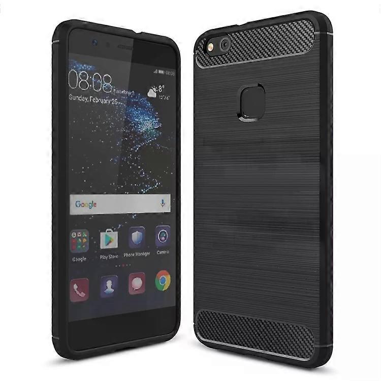 Huawei P10 Lite TPU Case-Shockproof Brushed Carbon Fiber Cover,Black Black
