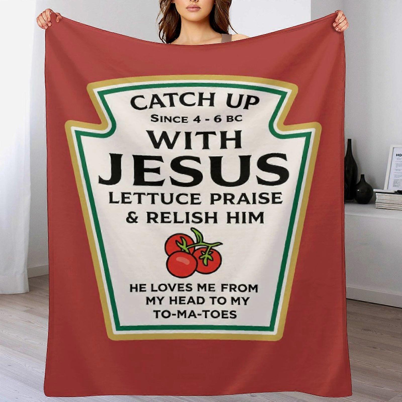 Humorous "Catch Up With Jesus" Ketchup Style Flannel Blanket - Soft Warm Throw | Faith-Based Gift Decor