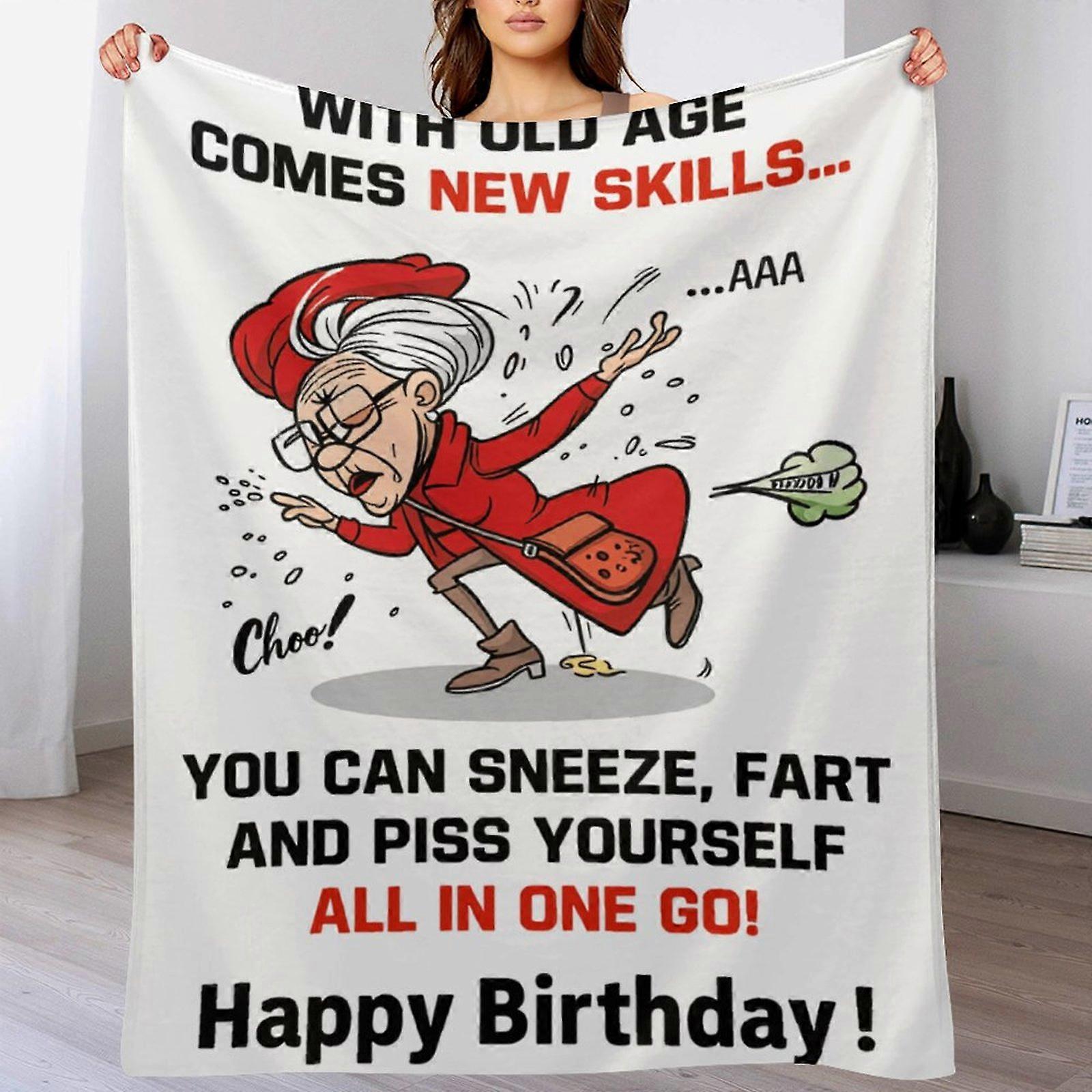 Humorous "Old Age New Skills" Grandma Flannel Blanket - Soft Cozy Throw | Birthday Gift Decor