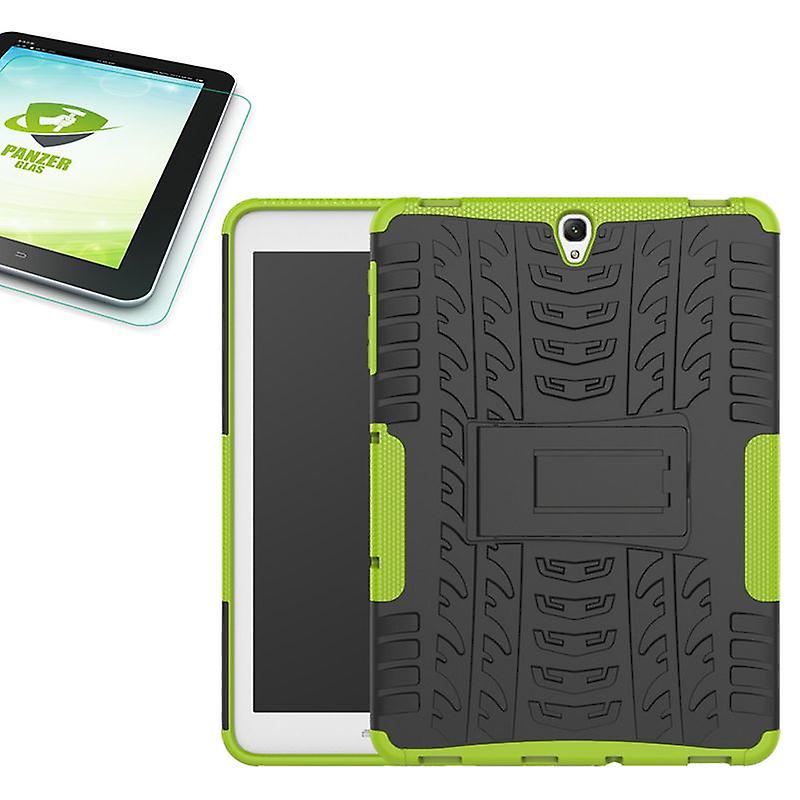 Hybrid Outdoor Tasche Grün für Samsung Galaxy Tab S3 9.7 T820 T825 2017 + 0.4 Hartglas