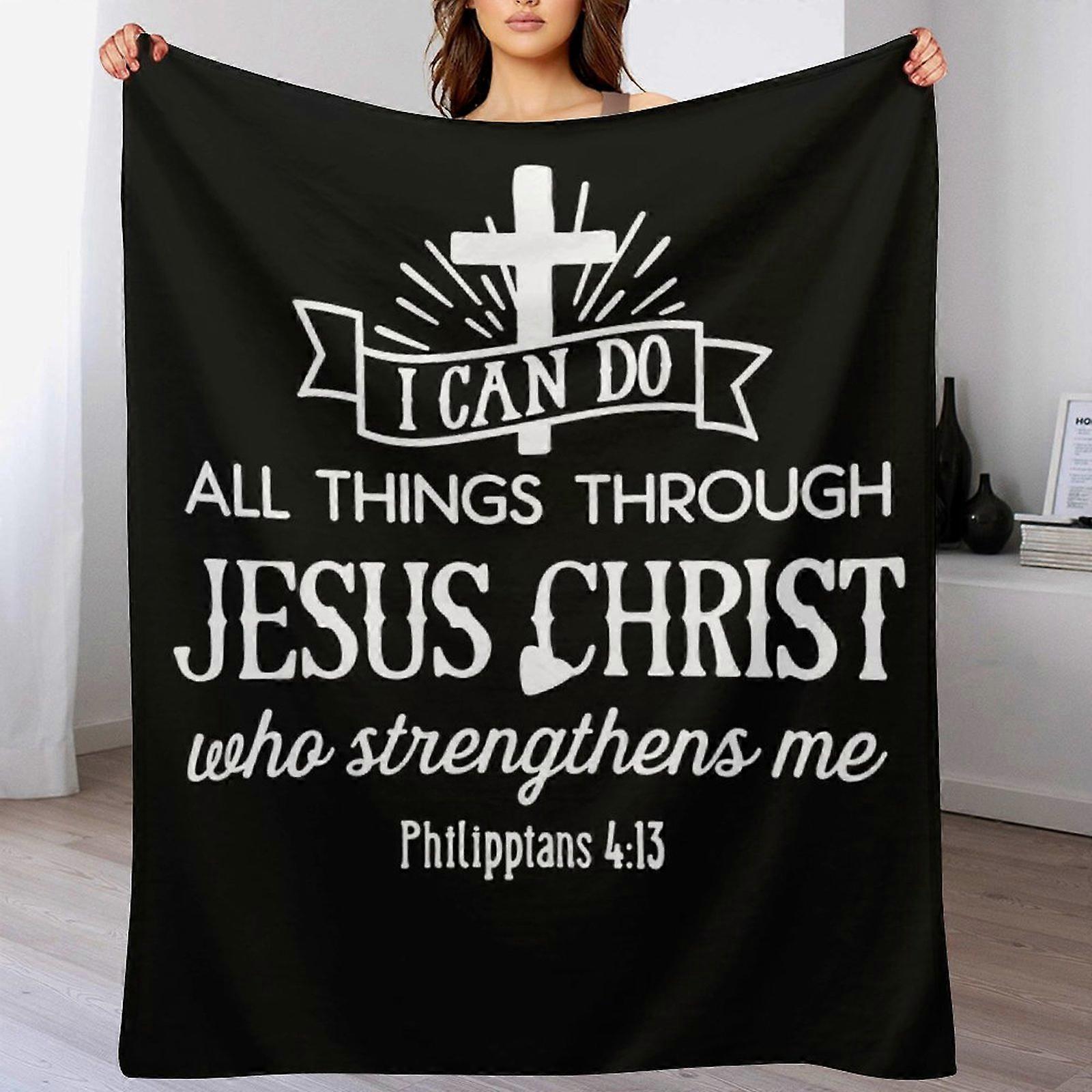 "I Can Do All Things Through Jesus" Philippians 4:13 Print Flannel Blanket - Cozy Warm Throw | Motivational Faith Gift for Adults