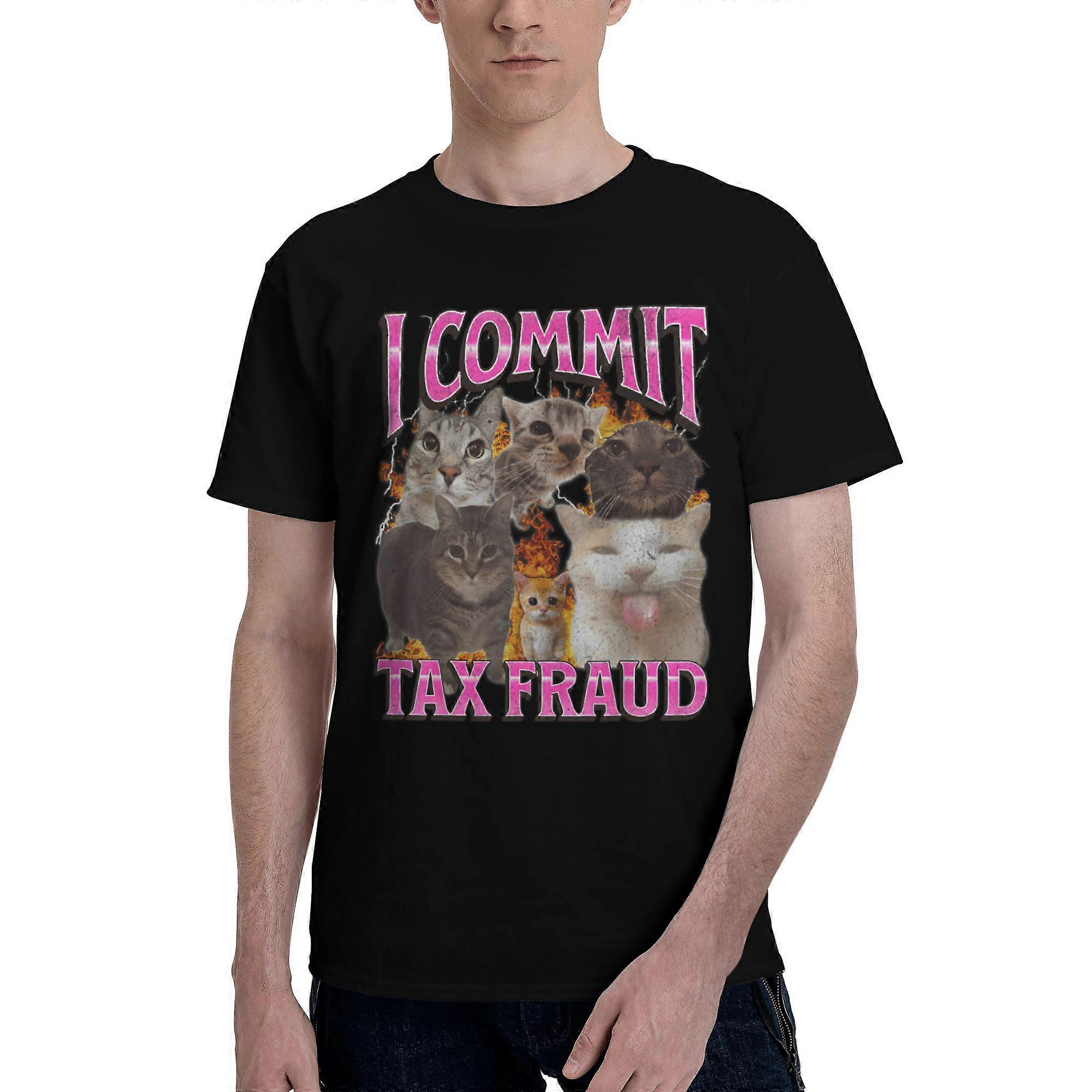 I Commit Tax Fraud Funny Cat Meme T Shirts Pure Cotton Tee Tops Streetwear Round Neck Tshirts Fashion Short Sleeve Clothing