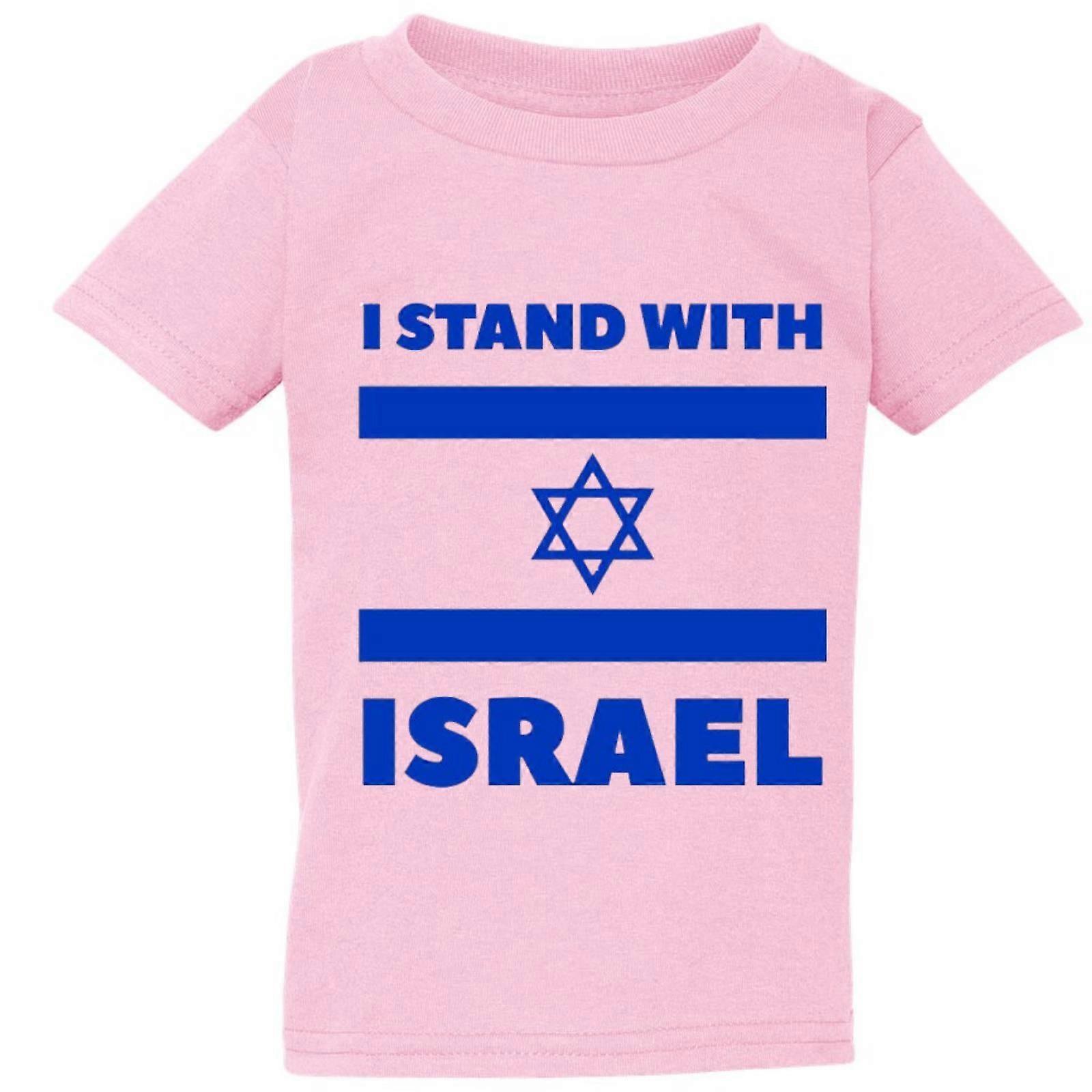 I Stand With Israel Flag Star Political Pink T-shirt Tee Top Baby Kids Boy Girl
