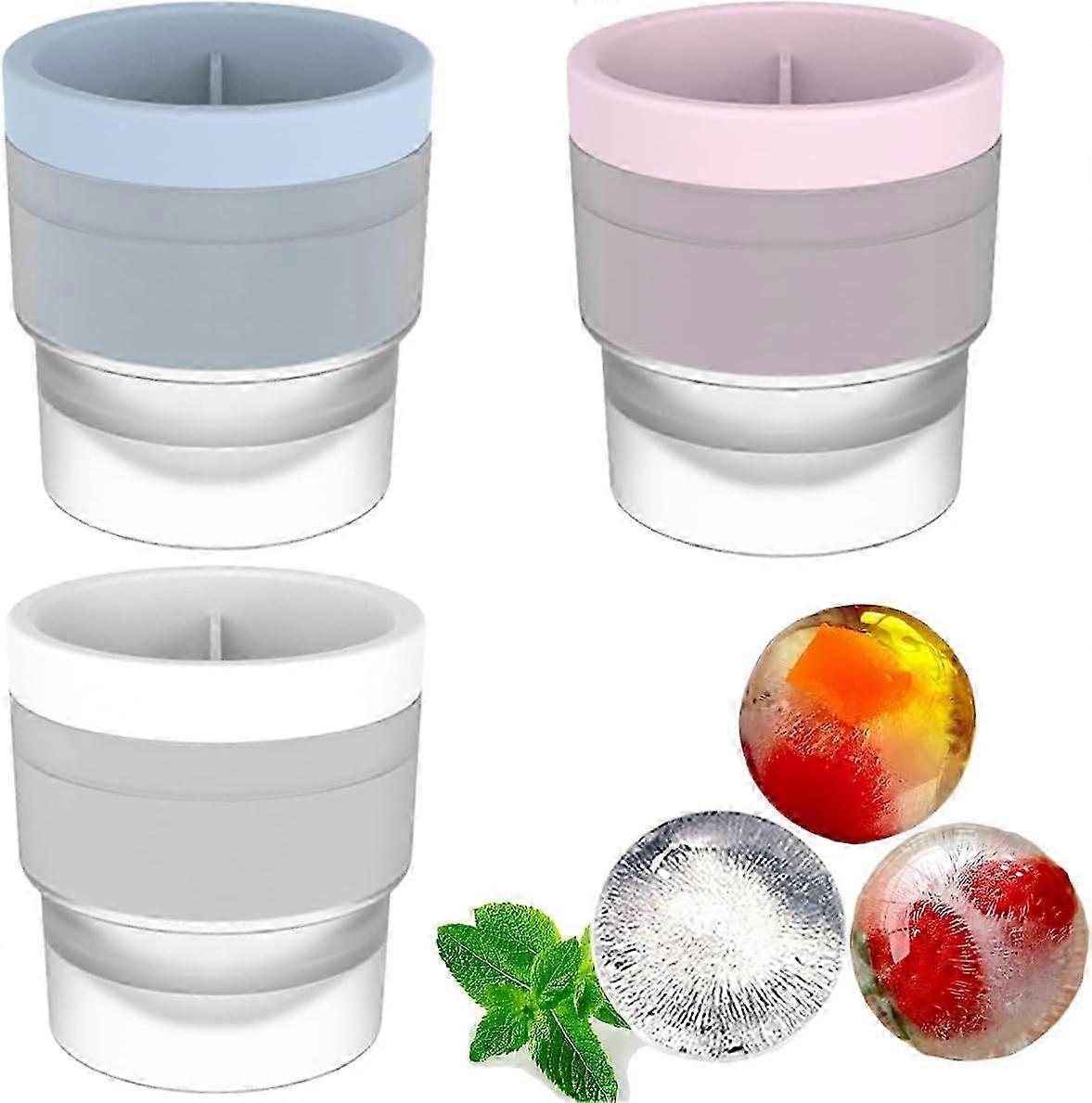 Ice Ball Maker Mold, 3 Pack Large Ice Cube Tray, Silicone Round Spherical Ice Mold, Whiskey Ice Mold, 6cm Diameter Ice Balls for Whiskey Cocktails - E