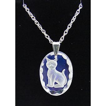 Ice Blue Oval Cat Crystal Pendant Necklace