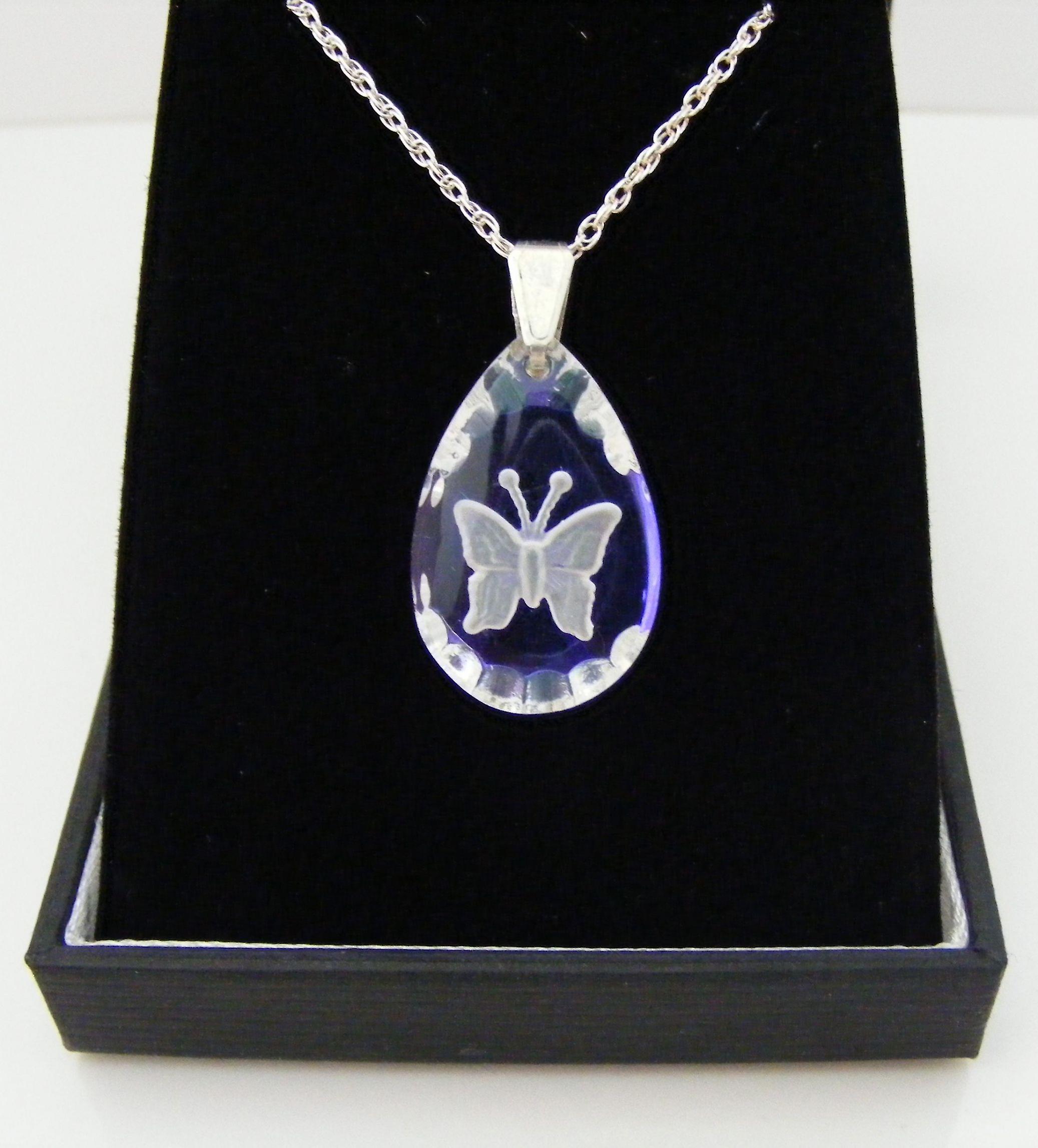 Ice Blue Small Teardrop Butterfly Crystal Pendant Necklace