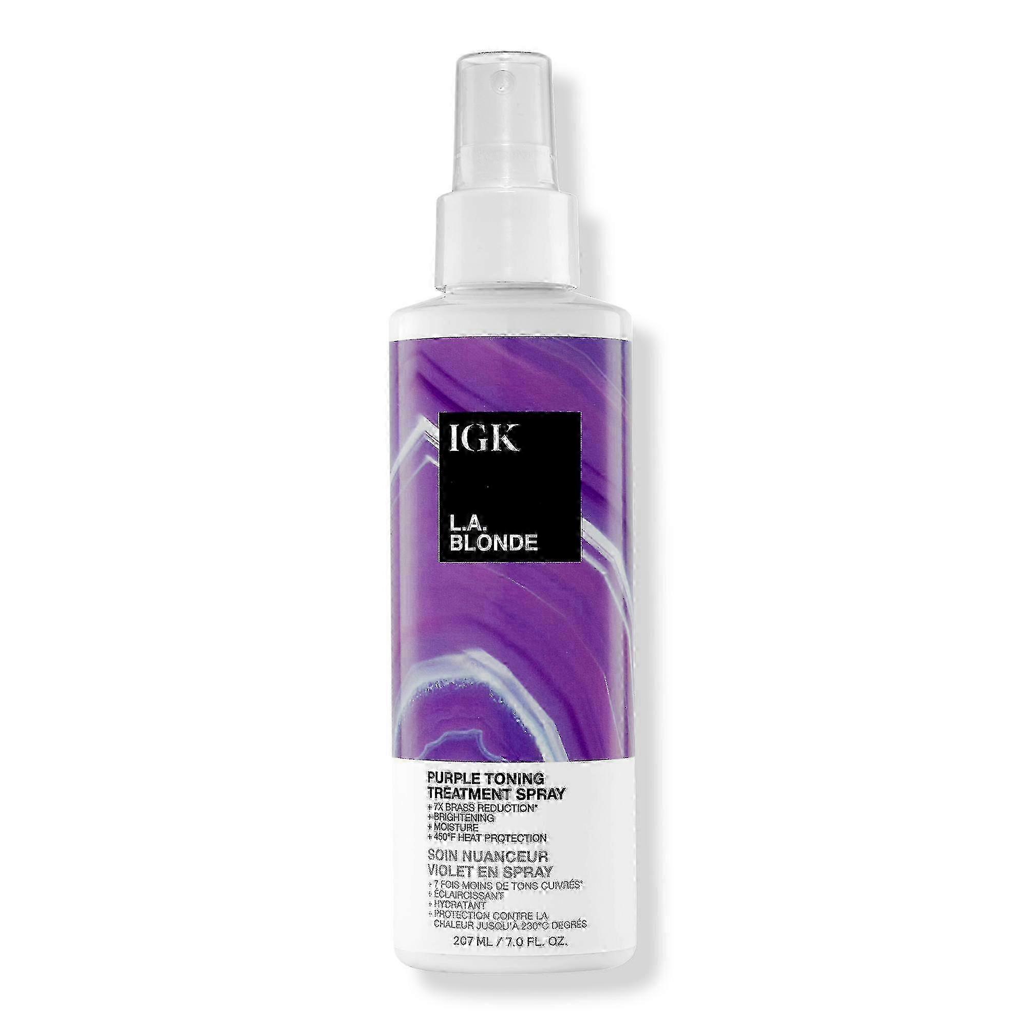 IGK's L.A. Blonde Toning Leave In Spray is a purple toning leave-in treatment that instantly neutralizes brass and brightens blonde. Lightweight formula restores hydration and provides 450F heat protection. Benefits 7x reduced brassiness*, brighter shade, moisturized strands, 450F heat protectionSoften, strengthen, hydrate, add shineSqualane-infused to help restore moisture, brilliance and shineUltra-clean formulas*When used as a system of Blonde Pop Shampoo, Conditioner and L.A. Blonde Treatment Spray Key Ingredients Purple Rice: helps soften and strengthen hairHyaluronic Acid*: hydrates and holds nearly 1000x its weight in water Formulated Without GlutenParabensSulfates (SLS or SLES)PetrolatumMineral Oil Suggested Use: Spray evenly onto clean, damp hair. Comb through and follow with styler. Expiration Date: We have fresh stock each week with exceptional expiration dates prior to APRIL 2024. Products will expire no later than six months to 1 year after receipt. Product Packaging: Please note that some manufacturer may often change their packaging. This product may arrive different from what is pictured. We will always ship the most up-to-date packaging to our customers. Please contact us if you have any questions about this product or would like to request an older version of this product. Healthcare Disclaimer: Content on this site is for reference purposes only. OTC Shoppe Express does not represent or warrant that the nutrition, ingredient, allergen and other product information on our Web or Mobile sites are accurate or complete, since this information comes from the product manufacturers. On occasion, manufacturers may improve or change their product formulas and update their labels. We recommend that you do not rely solely on the information presented on our Web or Mobile sites and that you review the product's label or contact the manufacturer directly if you have specific product concerns or questions. If you have specific healthcare concerns or questions about the products displayed, please contact your licensed healthcare professional for advice or answers. UPC: 000002593497 Weight: 0.94 lbs