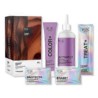 IGK Permanent Color Kit shares its signature shades straight from the salon.BenefitsLeaves hair 15x shinier and 88% softer and smoother strands with 40% reduced breakageProfessional-gradeSafe and easy to use formulasMistake-proof, easy-to-follow applicationFeaturing Squalane, Orchid Extract and Bamboo ExtractKey IngredientsSqualane (derived from sugar cane): Super emollient, replenishes moisture balance and adds shineOrchid Extract: Natural moisturizer, enhances hair softness and smoothnessBamboo Extract: Helps support hair strengthInactive Ingredients: Color Block Barrier Gel: Prunus Amygdalus Dulcis (Sweet Almond) Oil, Caprylic/Capric Triglyceride, Glycerin, Sucrose Laurate, Water (Aqua/Eau), Sucrose Stearate, Sucrose Palmitate Nourishing Color Developer: Water (Aqua/Eau), Hydrogen Peroxide, Cetearyl Alcohol, Glycerin, Squalane, PEG-40 Hydrogenated Castor Oil, Ceteareth-20, Phosphoric Acid, Dimethicone, Disodium EDTA, Etidronic Acid, Oxyquinoline Sulfate Color Rich Cream Pigment - 4N Original Brown Dark Natural Brown: Water (Aqua/Eau), Cetyl Alcohol, Ethanolamine, Propylene Glycol, Cetearyl Alcohol, Ceteareth-25, Cocamide MEA, Toluene-2,5-Diamine Sulfate, Ceteth-2, Cocamidopropyl Betaine, 4-Chlororesorcinol, Glycerin, Squalane, Orchis Mascula Extract, Bambusa Vulgaris Sap Extract, Bisabolol, Sodium Sulfite, Ascorbic Acid, Sodium Chloride, Sodium Hydrosulfite, Xanthan Gum, Dimethicone, Tetrasodium Glutamate Diacetate, m-Aminophenol, p-Aminophenol, 2,4-Diaminophenoxyethanol HCl, 2-Amino-3-Hydroxypyridine, Disodium EDTA, Phenoxyethanol, Ethylhexylglycerin Post-Color Treatment Mask: Water (Aqua/Eau), Cetearyl Alcohol, Propylene Glycol, Cetrimonium Chloride, Amodimethicone, Guar Hydroxypropyltrimonium Chloride, Squalane, Limnanthes Alba (Meadowfoam) Seed Oil, Opuntia Ficus-Indica Seed Oil, Caprylic/Capric Triglyceride, Benzyl Glycol, Trideceth-12, Fragrance (Parfum), Glyceryl Stearate SE, Hydrolyzed Quinoa, Ethylhexylglycerin, Panthenol, Sodium Chloride, Raspberry Ketone, Sodium Benzoate, Citric Acid, Potassium Sorbate Stain-Removing Cleanser: Water (Aqua/Eau), Sodium Lauroyl Sarcosinate, Disodium Cocoamphodiacetate, Cocamidopropyl Betaine, Propanediol, Opuntia Ficus-Indica Stem Extract, Polyglyceryl-4 Caprate, 1,2-Hexanediol, Pullulan, Sodium Laurate, Potassium PCA, Lactic Acid, Caprylhydroxamic Acid, Sodium Chloride, Phenoxyethanol, Potassium SorbateSuggested Use: Step 0: * Drape a towel around your shoulders or put on a t-shirt you don't mind getting stained. * Grab a wide tooth comb, a few hair clips, a timer and a cotton cloth. * Divide your hair into four quadrants, by center parting hair from front to back, then from ear to ear. Clip each section onto head. Step 1: * Apply PROTECT 1 COLOR BLOCK BARRIER GEL directly to the skin along your hairline and ears to avoid staining. Step 2: * Squeeze the entire tube of COLOR 2 RICH CREAM PIGMENT into the ACTIVATE 3 NOURISHING COLOR DEVELOPER bottle (every drop counts
