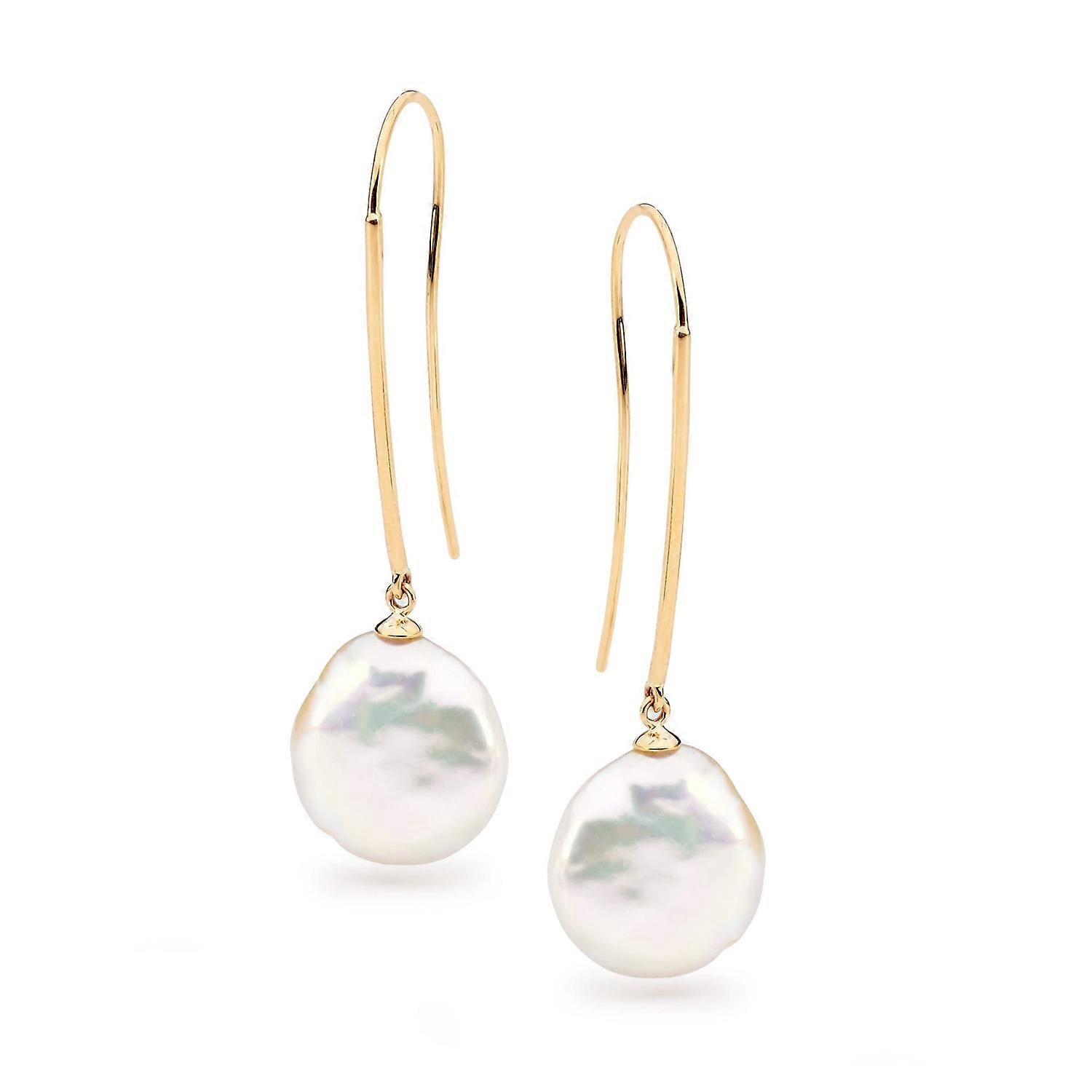 Ikecho Gold Coin Freshwater Pearl Earrings