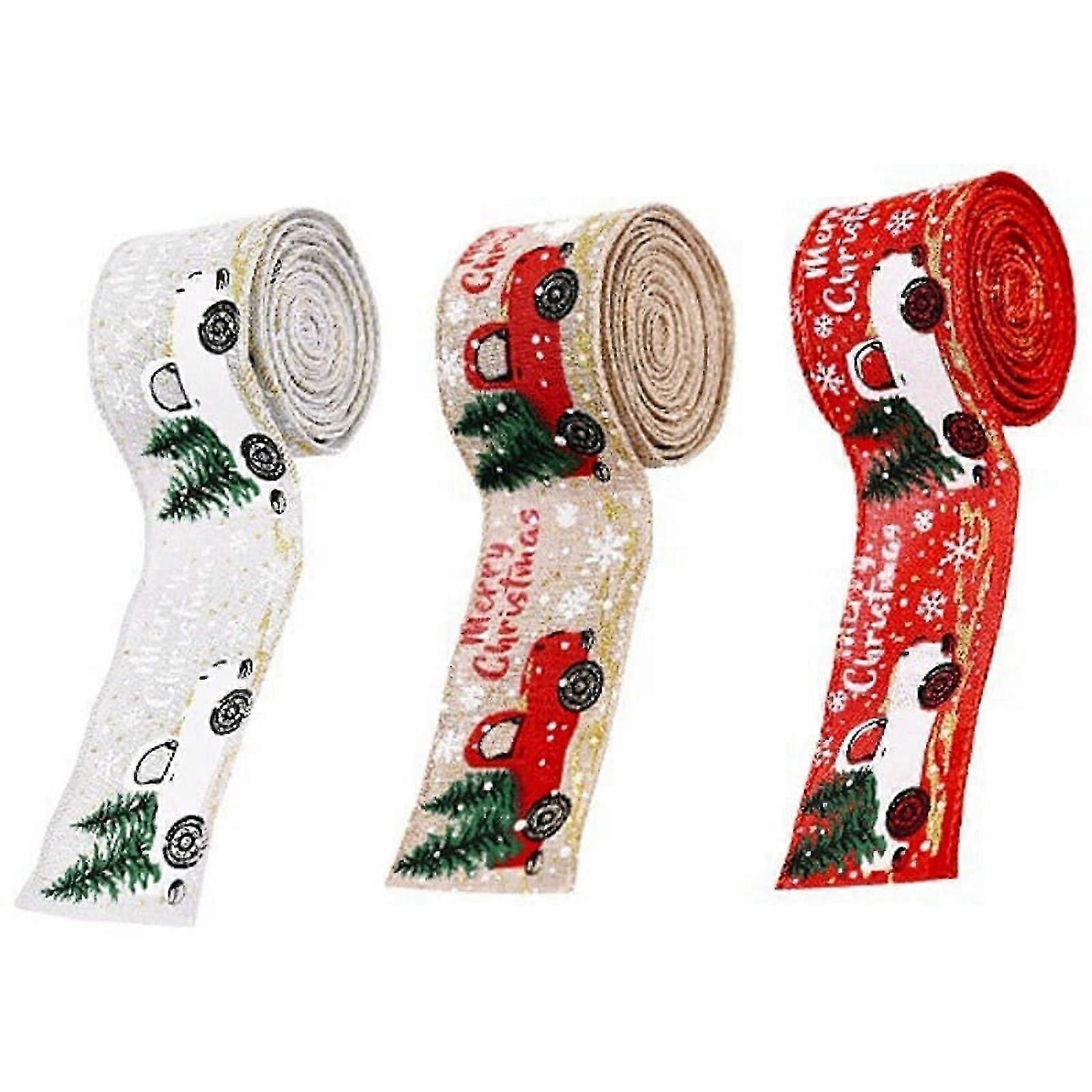 IMCBSTT 3 Rolls Christmas Ribbons Decorative Ribbons for DIY Craft Bows 5cmx5M