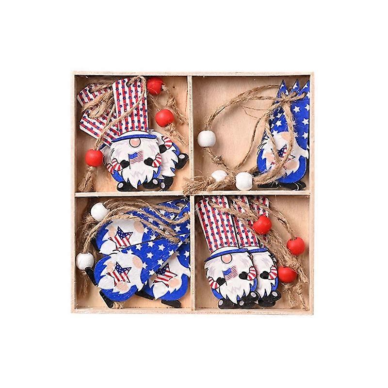 Independence Day Gnome Wood Ornaments 12 Pieces/Box to Hang for July 4th Christmas Home Decoration Patriotic Decorations