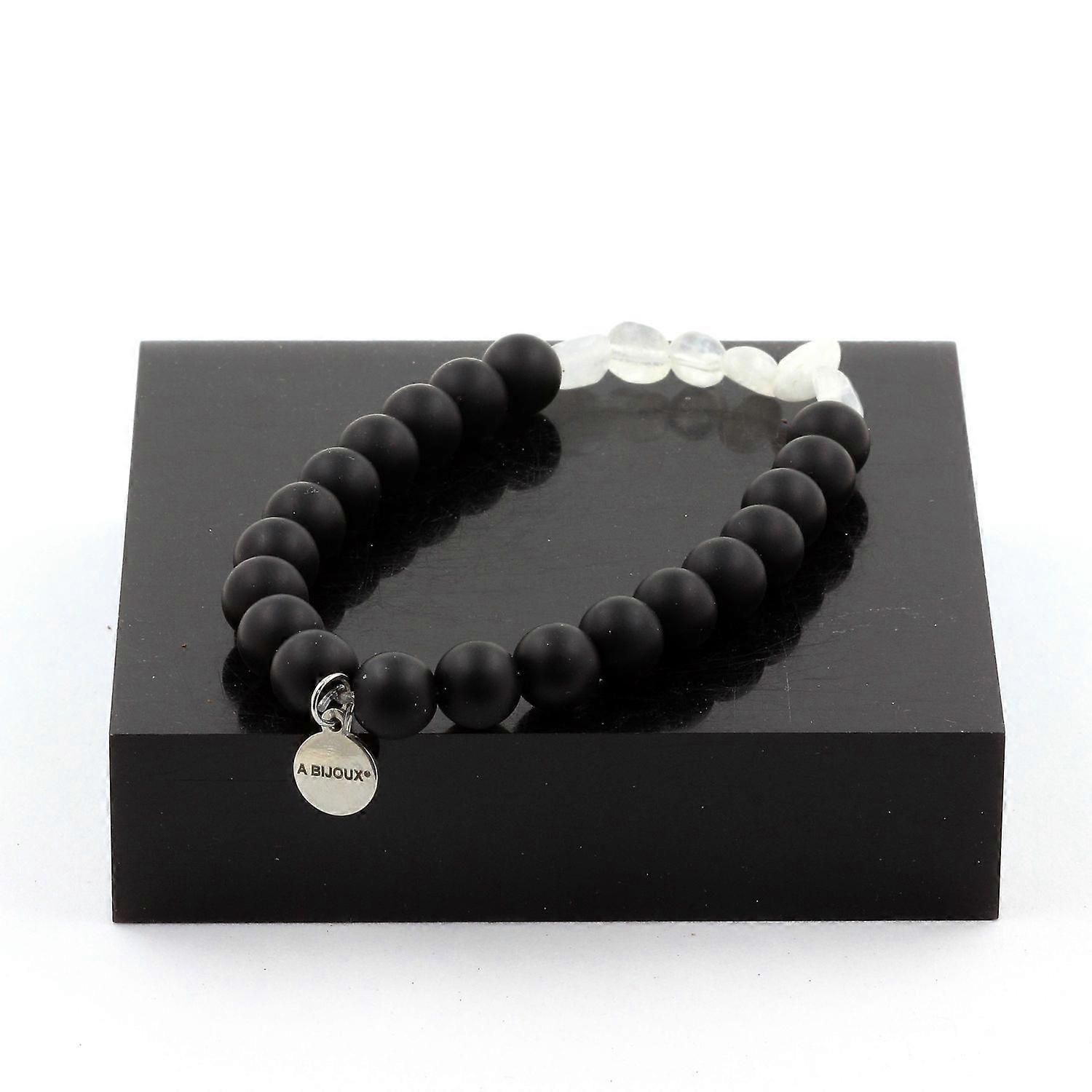 Indian Moonstone Bracelet + Matte Black Onyx Beads 8 mm