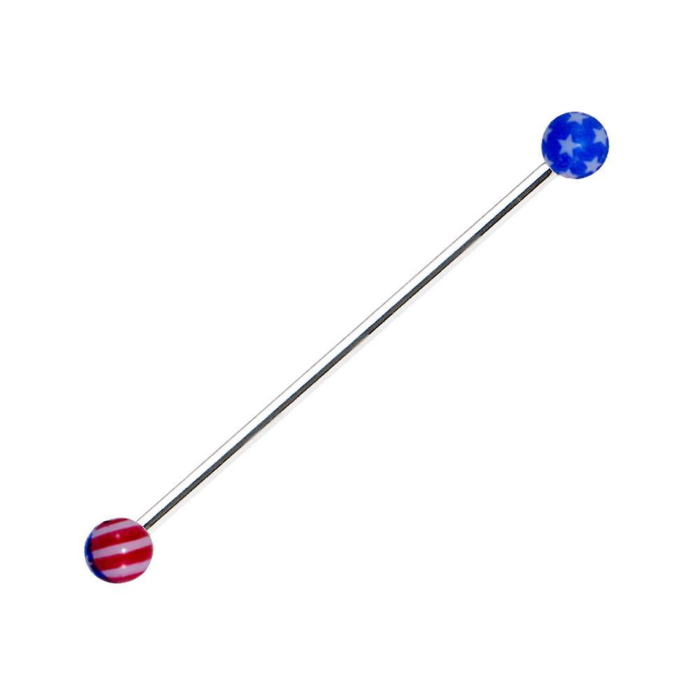 Industrial barbell 14g surgical steel with 14g american flag design 1 1/4(32mm)