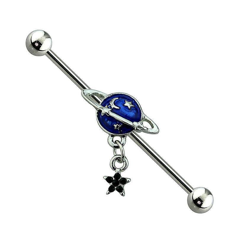 Industrial barbell nasa-inspired night sky with star dangle 316l surgical steel