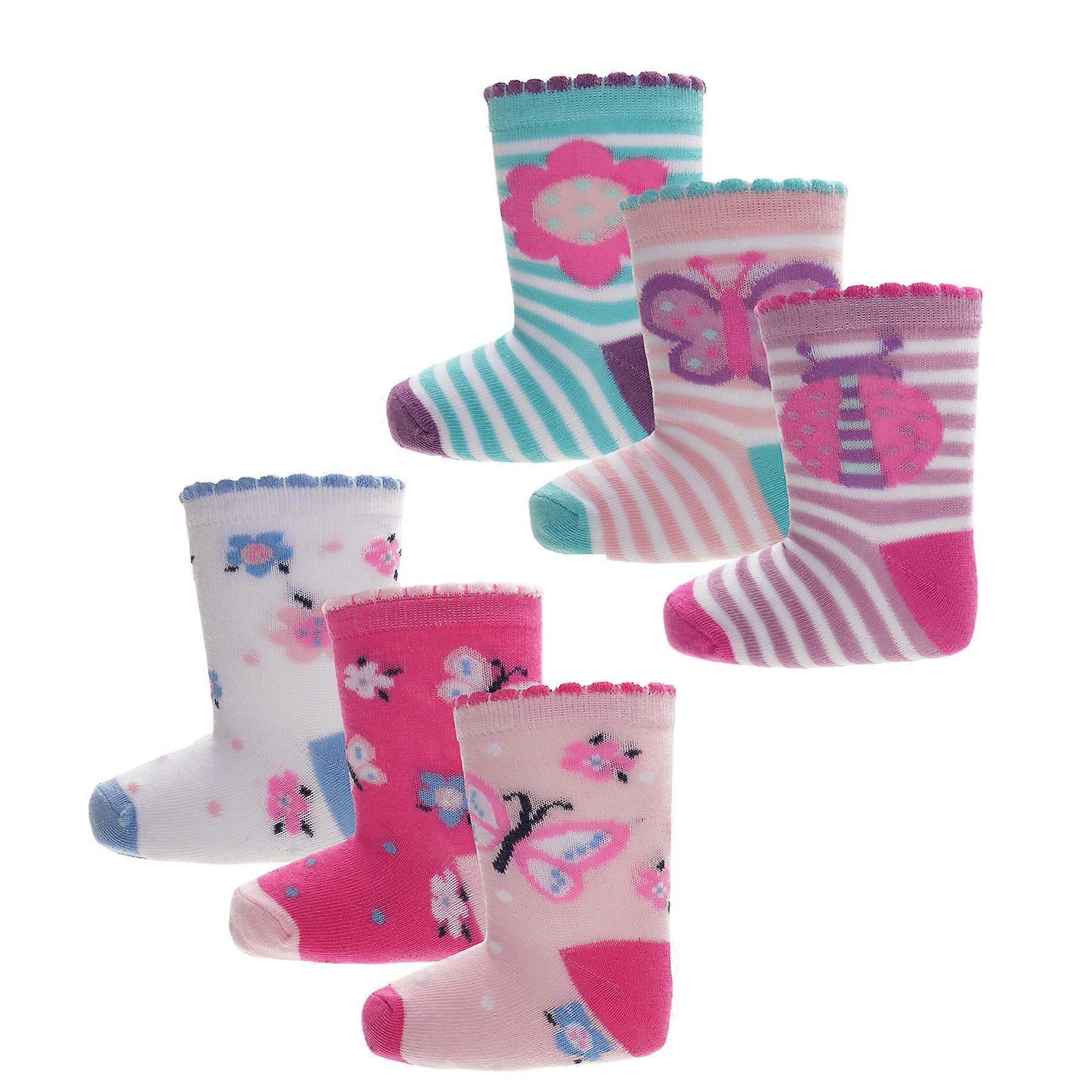DESIGN & OCCASION:These adorable A2Z 4 Kids baby socks feature colourful themed designs including cars, trucks, dinosaurs, unicorns, rainbows, butterflies and flowers, making them perfect for daily wear, nursery and playtime. Their bright patterns bring fun to any outfit while offering a cute gift option for newborns, birthdays, baby showers and celebrations.COMFORT & MATERIAL:Crafted from a soft cotton-rich blend, these baby socks provide gentle comfort for delicate skin while ensuring breathability throughout the day. The stretchy elastane offers a snug yet flexible fit that moves easily with your little one, helping keep small feet cosy, supported and irritation-free during crawling, walking or relaxed indoor play.FUNCTIONALITY & DURABILITY:Designed for everyday practicality, these 6-pack baby socks deliver long-lasting wear with reinforced heels and toes for improved durability. Easy to put on and secure during wiggly moments, they maintain their softness wash after wash. The ribbed cuffs help prevent slipping, ensuring they stay in place during active play or stroller time.SAFETY & SUPPORT:The cotton-rich fabric ensures good breathability while helping maintain ideal foot temperature, reducing the risk of overheating. Soft cuffs provide gentle support without leaving marks on sensitive skin. The lightweight construction helps little feet move naturally, offering comfort and peace of mind for parents throughout everyday activities.COLOUR OPTIONS, SIZING & GIFT IDEA:Available in four bright themed packs�Blue Rescue Vehicles, Green Dino Adventure, Pink Unicorn Dreams and Blossom Butterfly Garden�these socks come in sizes 0-6, 6-12 and 12-24 months. Their fun designs and practical 6-pack format make them an ideal gift choice for baby showers, newborn hampers and seasonal gifting.