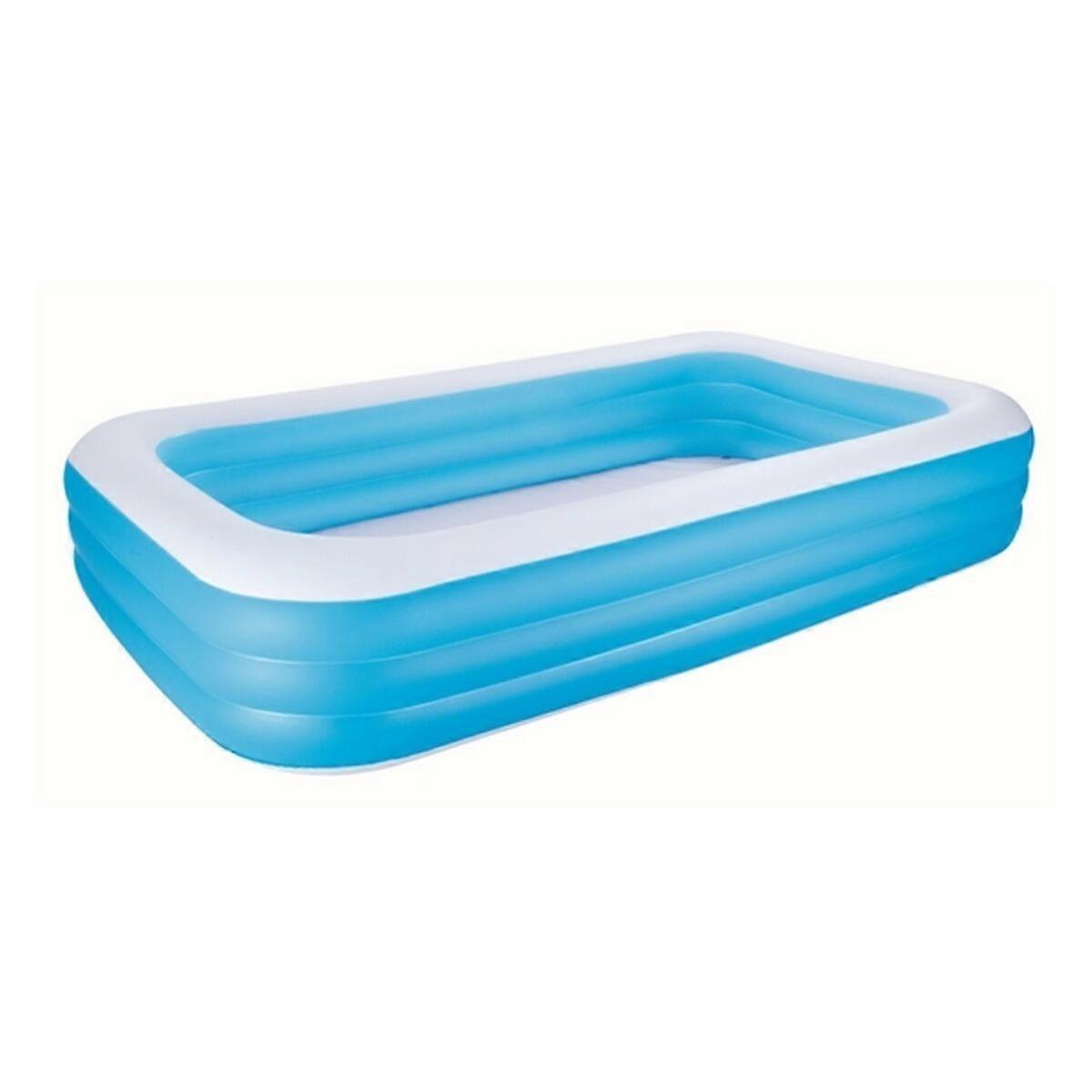 Summer fun is assured with these offers. Little ones and grown ups will love them Inflatable Paddling Pool for Children Bestway Multicolour 305 x 183 x 56 cm and enjoy your free time Type: Children'sChildren's poolInflatable Paddling Pool for ChildrenBoxColour: BlueWhiteMulticolourApprox. dimensions: 305 x 183 x 56 cm183 x 305 x 56 cmRecommended age: + 6 Years+ 6 Months+ 0 MonthsKidsMaterial: PlasticPVCStickCharacteristics: For outdoor useClean with a wet clothRecommended use: BeachGardenCampingLanguage: EnglishShape: RectangularSquaredAssembly: No DELUXE BLUE RECTANGULAR FAMILY POOL - Three 3 interconnecting nozzles - Sturdy pre-tested vinyl - 3 equal rings - Sturdy I-beam construction - Extra wide side walls - Heavy-duty repair patch included - Designed water capacity: 1,161 L 307 gal.) - Releases pool water with the easy-to-use drain valve Content: One pool, repair patch Product colour: Blue,WhiteMaterial: VinylRecommended age (min): 6 yr(s)Coloration: PatternExtra wide walls: YNumber of air valves: 3Intrastat code: 95069990Capacity: 1161 LWidth: 3050 mmDepth: 1830 mmHeight: 560 mmWeight: 7.28 kgThickness: 0.32 mmPackage type: BoxPackage width: 400 mmPackage depth: 400 mmPackage height: 130 mmPackage volume: 49000 cm³Package volume: 0.049 m³Repair patch included: YQuantity per pallet: 48 pc(s)Minimum order quantity: 2 pc(s)