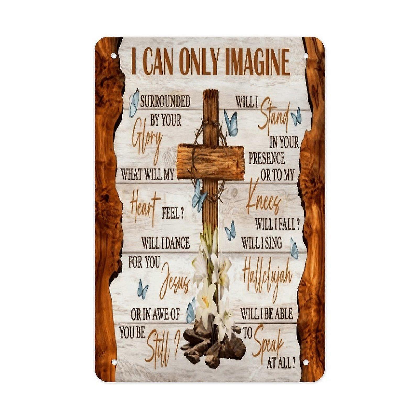 Inspirational Faith Quote Cross Metal Tin Sign, Rustic Vintage Style Wall Decor, Spiritual Iron Wall Art for Home Chapel