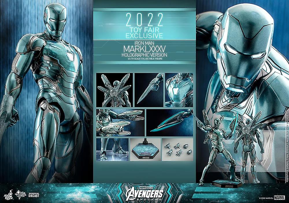 2022 Toy Fair ExclusiveIron Man Mark LXXXV is the most advanced and powerful armour Tony Stark has ever created. It's a special armour that gives Stark superhuman strength, durability, flight, and a variety of high-tech weapons.Inspired by the design of Tony Stark's very last Iron Man suit in MCU, Hot Toys is excited to present the Holographic Version of Iron Man Mark LXXXV Sixth Scale Collectible Figure in metallic blue as this year's toy fair exclusive item only available in selected markets.Masterfully crafted based on Iron Man Mark LXXXV in Avengers: Endgame, the diecast figure giving the armour a holographic twist features a helmet head with LED-light up function, intricate design of the Iron Man armour reproduced in blue accent with a metallic appearance, LED light-up functions scattered throughout the upper body, back and Arc Reactor on chest, highly-detailed weapons including Nano Lightning Refocuser, energy blade, Katar and a pair of Nano Repulsor Cannons, interchangeable hands, and specially designed figure stand.This holographic version of Iron Man will surely stand out in your Hall of Armours collection