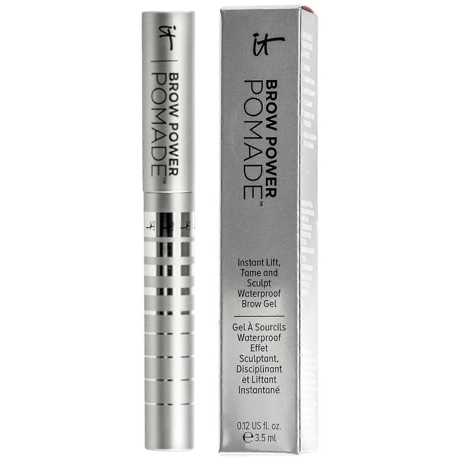 IT Cosmetics Brow Power Pomade is a waterproof 4-in-1 brow gel that perfects, defines, and sets your brows in place. This innovative formula builds and lifts while taming hairs, helping you sculpt your ideal eyebrow shape. The customized tapered brush allows for effortless application, smoothing and defining your brows with precision. Key Features: Waterproof, long-lasting formula Budge-proof and flake-free Builds, lifts, and sculpts brows Tames and grooms brow hairs Quick-drying Customized tapered brush for precise application Suitable for all hair colors Paraben-free Ingredients Water, Alcohol Denat., VP/VA Copolymer, Butylene Glycol, Glycerin, Phenoxyethanol, Carbomer, Aminomethyl Propanol, Panthenol, Caprylyl Glycol, Ethylhexylglycerin, Hexylene Glycol, Biotin, Hydrolyzed Silk, Serenoa Serrulata Fruit Extract, Argania Spinosa Kernel Oil, Simmondsia Chinensis (Jojoba) Seed Oil. Suggested Use> Twist open the cap and remove excess product from the brush. Starting at the inner corner of your brow, brush the product through your brows in short, upward strokes. Use the tip of the brush to define and shape the tail of your brow. Allow the product to dry completely for long-lasting wear. For best results, use in conjunction with other IT Cosmetics brow products for a fuller, more defined look.