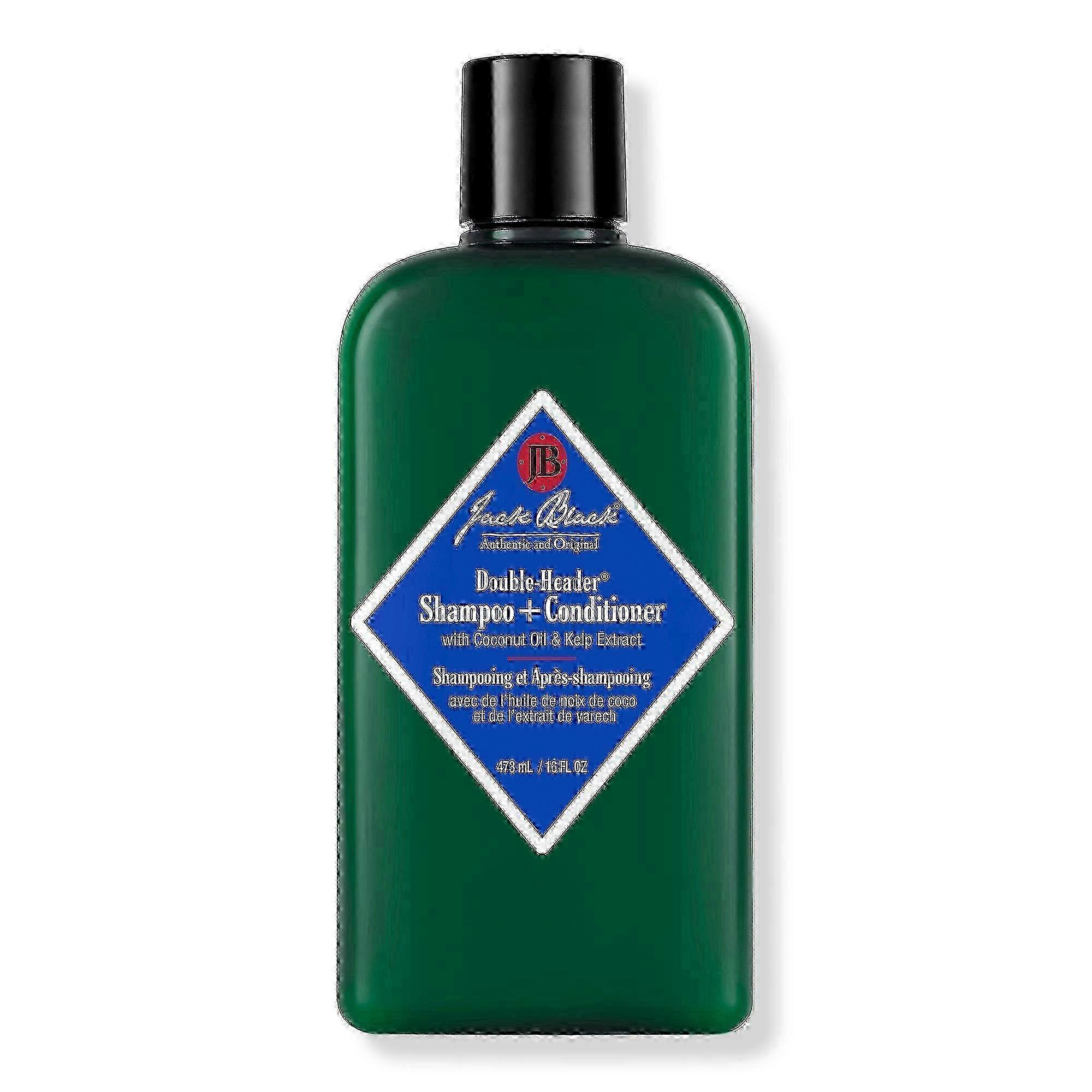 Jack Black's Double-Header Shampoo + Conditioner is a sulfate-free lather that removes oil and buildup while conditioning hair and soothing the scalp.