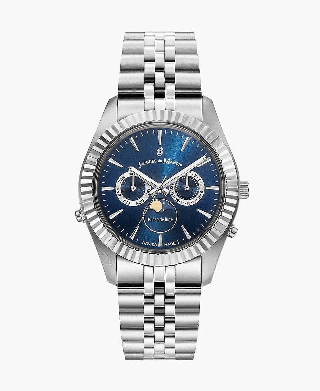 Jacques du Manoir Inspiration Moonphase 40mm Day-Date Men's Silver Blue Watch