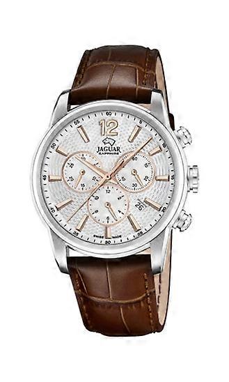 Jaguar J968/1 Men's Chronograph Watch - Silver Dial, Brown Leather Strap