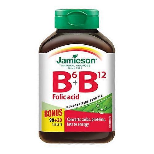 Jamieson Vitamins Vitamin B6 + B12 And Folic Acid Bonus Size, 110 Tablets (Pack of 2)