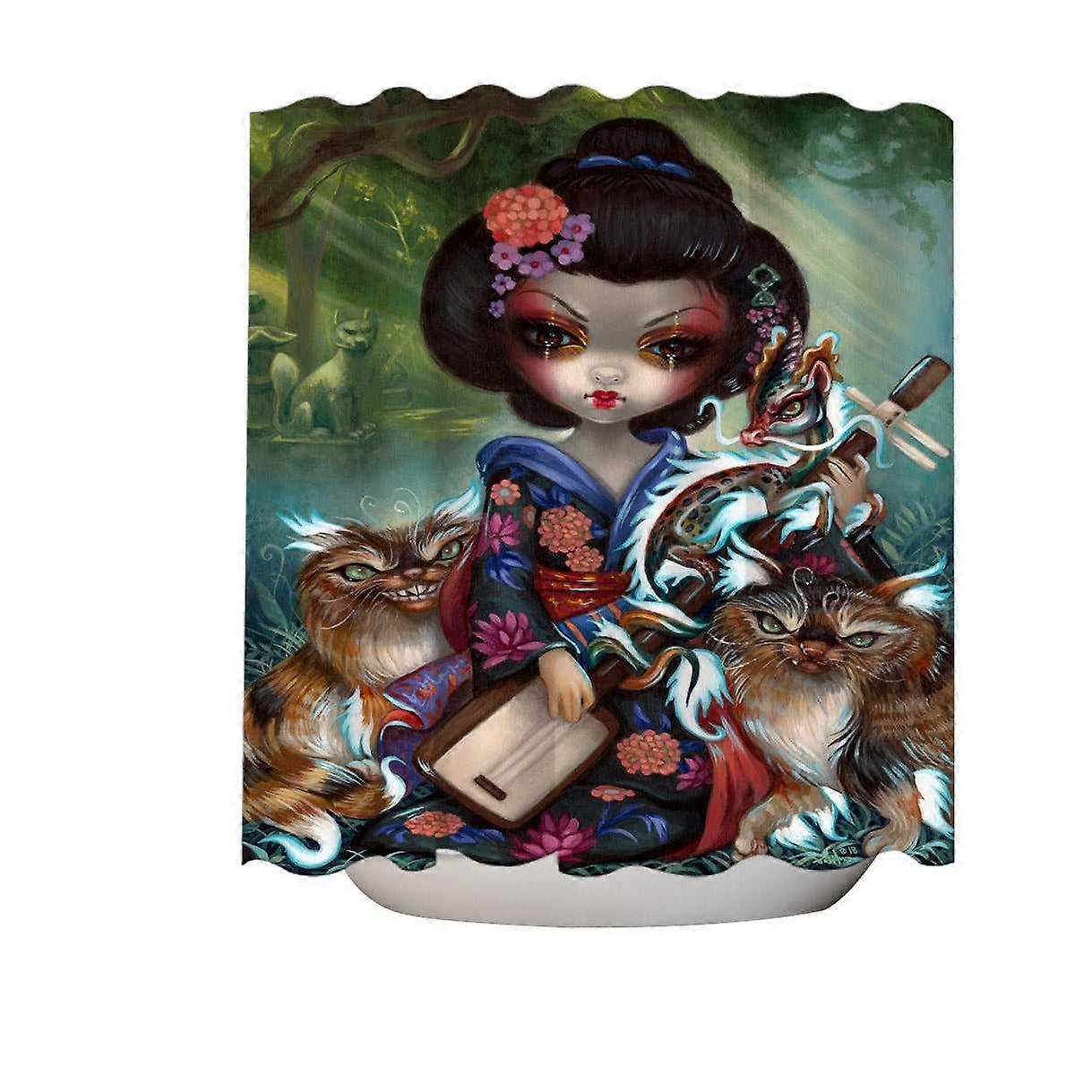 Japanese Fantasy Art Geisha Girl Kirin and Bakeneko Shower Curtain