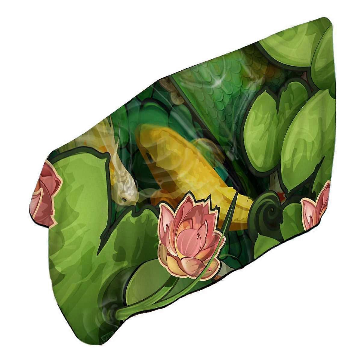 Japanese Koi Water Lilies and Beautiful Girl Microfiber Beach Towel