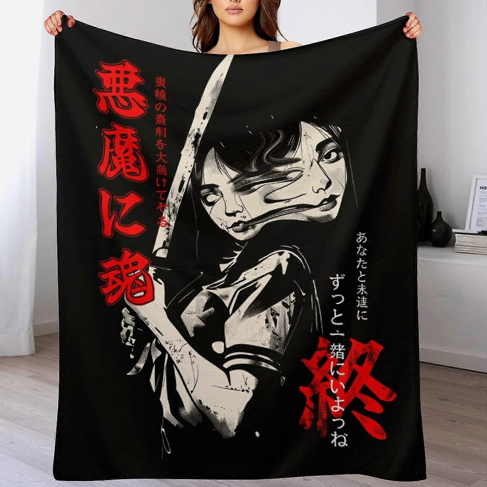 Japanese Samurai Sword Woman Print Flannel Blanket - Soft Warm Throw | Edgy Anime Decor for Alternative Fans