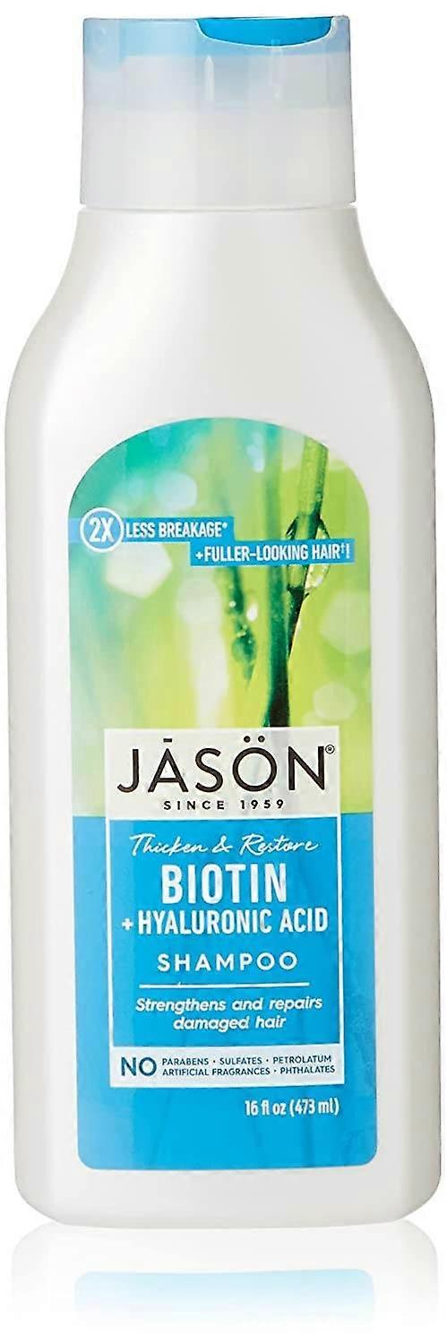 Gently massage shampoo into wet hair and scalp. Rinse and repeat if desired. Follow with Jason Restorative Biotin Conditioner.