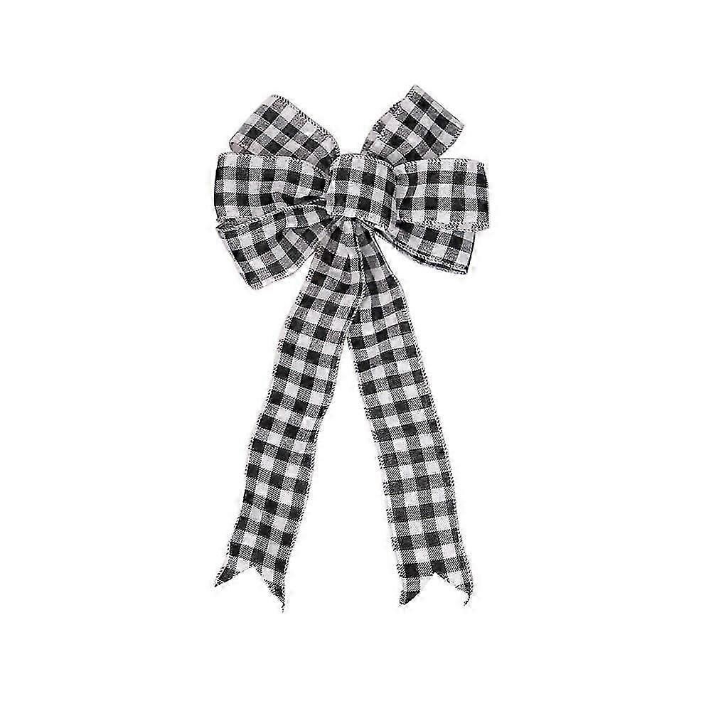 JeashCHAT Christmas Plaid Checkered Ribbon Bow, Black & White